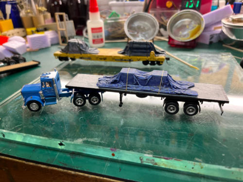 with weathering powders. Cut the tissue to shape to fit the layout. Chains may be used for